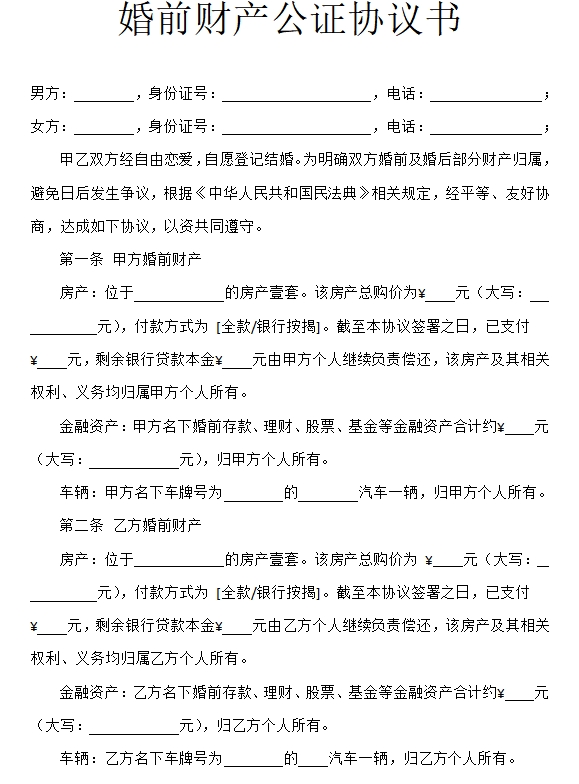 婚前财产公证协议书