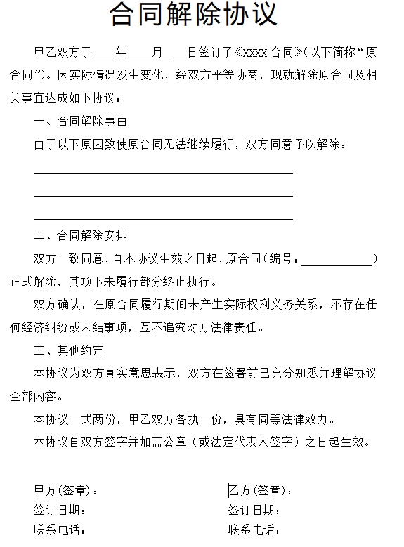 合同解除协议