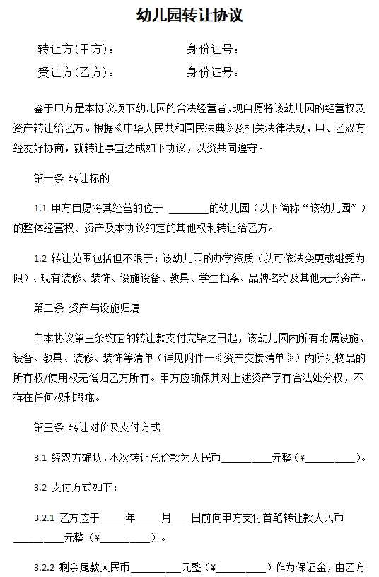 幼儿园转让协议